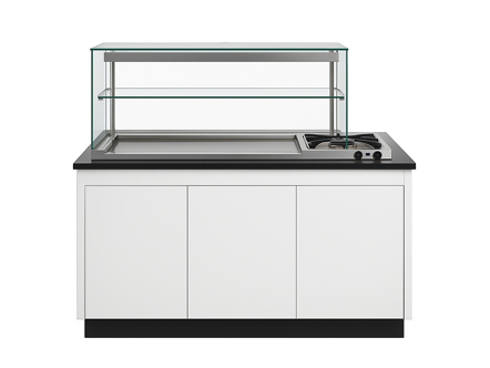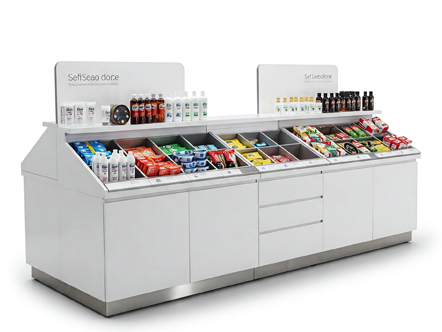 Modular and multi-functional designs that suit open layouts. Great for buffet setups, grab-and-go stations, or island-style display zones.