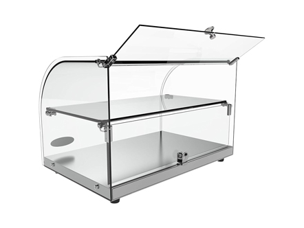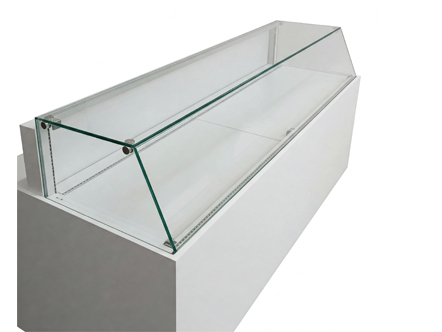 Equipped with a tiltable front glass, this counter provides both clear visibility and easy access for staff and customers.